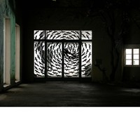 Klebefolie. H330 / B376 cm. Zusammenarbeit mit Thomas Grüter. Kunsthaus Baselland. Auf die Fenster der äusseren Eingangstür des Kunsthauses Baselland sind eine Grössere Zahl von Aufkleber-Vogelbilder als Schwarm appliziert. Das Bild des einzelnen Vogels verwandelt sich im Schwarm zum ornamenthaften, an einen Strudel erinnerndes Bild, das je nach Tageszeit von aussen nach innen wirkt oder umgekehrt. Es ist gleichzeitig auch eine Anspielung auf den Hitchcock-Klassiker „die Vögel“.