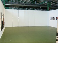 Ausstellungswände, Sperrholz. H300 / B824 / T20 cm. Messe Basel. In Tektonik wird die Ausstellungsarchitektur und die Messehalle als Raum thematisiert. Durch einfache Eingriffe wird die Ausstellungswand, an ihren bestehenden Schnittstellen (sie besteht aus 1 Meter breiten Platten) aus den Angeln gerissen und leicht verschoben und abgedreht wieder zusammengesetzt. Die Wand, die normalerweise möglichst unauffällig gehalten wird, wird damit selbst zum Ausstellungsobjekt. Sie bricht an ihrer Schwachstelle und wird so zum neuralgischen Punkt der Ausstellung. Eine seitlich eingewirkte physikalische Kraft und Bewegung wird sichtbar gemacht und kann in der Vorstellung durch die gesamte Ausstellungsarchitektur fortgesetzt werden. Von weitem erscheint die Wand eher als Bild, von Nahem geben die schmalen Ritzen dem Betrachter die Sicht vom Ausstellungsraum in die leerstehende Messehalle frei.